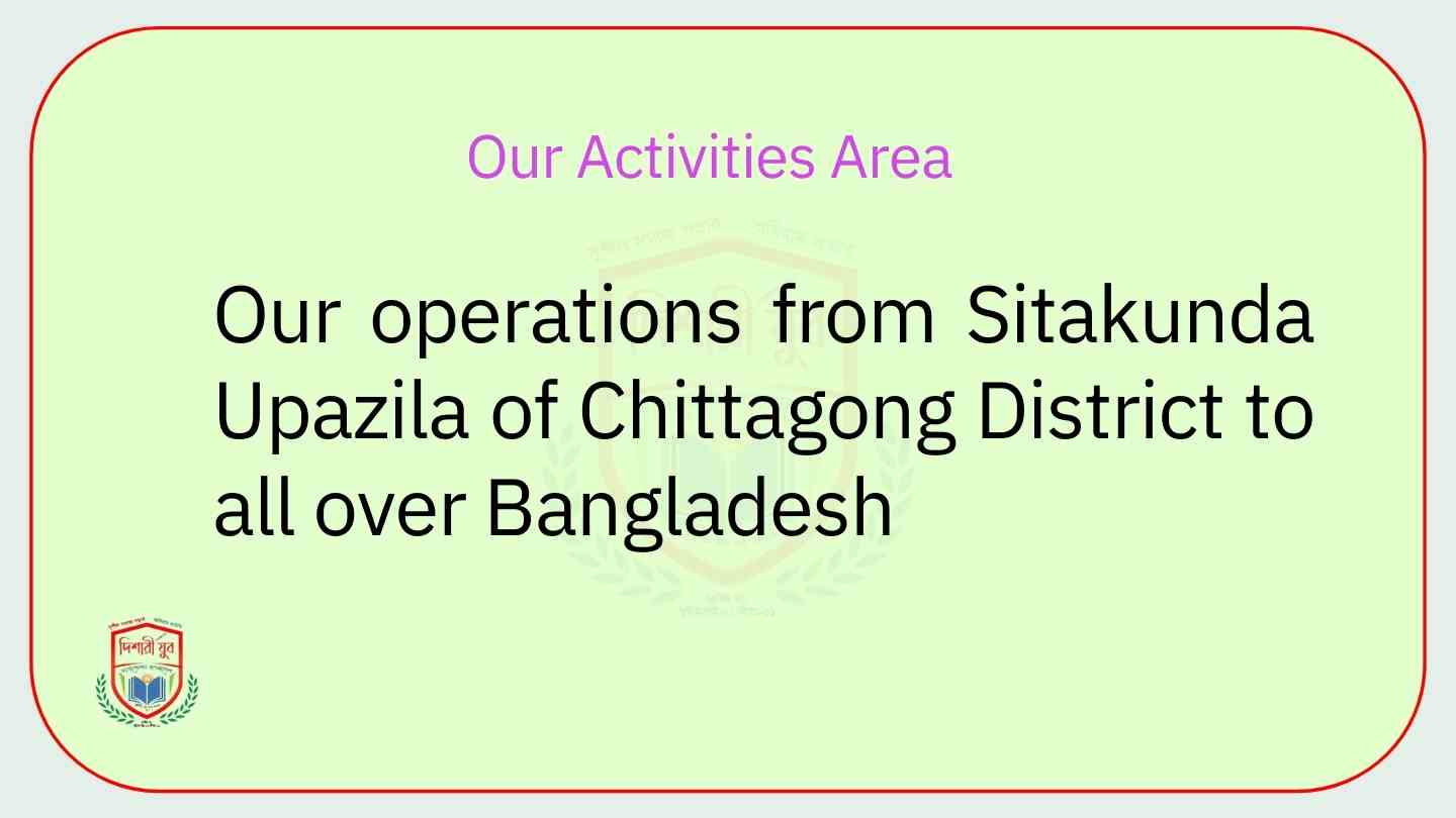 এই সংগঠন সাধারণ শিক্ষা, সাহিত্য ও সাংস্কৃৃতিক কর্মকান্ড নিয়ে কাজ করে আসছে । সমাজের পরিবর্তনের লক্ষ্যে, গতানুগতিক শিক্ষার পরিবর্তে সরকারের ডিজিটাল প্রযুক্তিগত শিক্ষা, সৃজনশীল পদ্ধতিতে শিক্ষা ব্যবস্থায় ছাত্র-ছাত্রীদের মানষিক ভয়ভীতি দূর করার লক্ষ্যে সরকারের পাশে থেকে শিক্ষার মান বৃদ্ধি, স্বাস্থ্য সচেতনতা ও সেবা, পরিবেশ উন্নয়ন ও সংরক্ষণ, বেকার যুবক-যুবতীদের প্রশিক্ষণ ও দক্ষতা উন্নয়ন, ইকো ট্যুরিজম, পিছিয়ে পড়া শিশুদের পড়াশোনা, নিরক্ষরতা দূরীকরণ, সাংস্কৃতিক উন্নয়ন ও শান্তি শৃঙ্খলা উন্নয়নে কাজ করে যাচ্ছে।