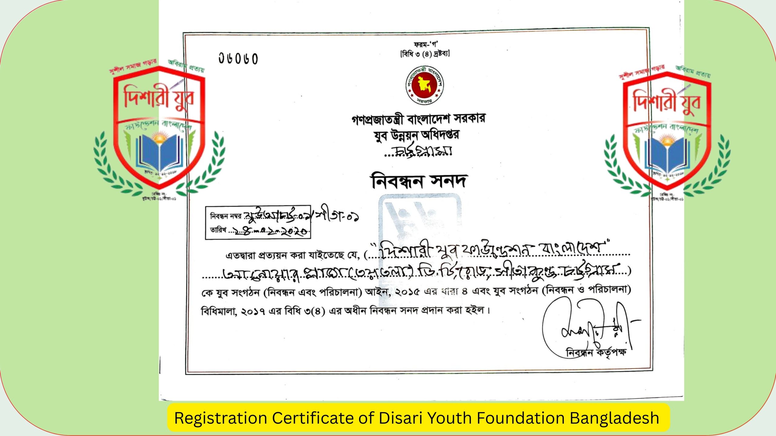 Subsequently, the organization proposed to register with the Department of Youth Development through a resolution of the Board of Directors of Disari Foundation Bangladesh on 12 December 2018.