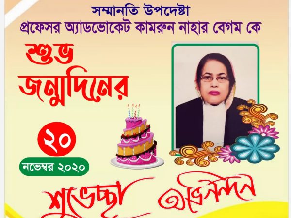 আজ ২০ নভেম্বর ২০২০ ইংরেজী দিশারী যুব ফাউন্ডেশন বাংলাদেশ এর উপদেষ্টা ও আইন-আদালত প্রতিদিনের প্রধান উপদেষ্টার প্রফেসর অ্যাডভোকেট কামরুন নাহার বেগম এর শুভ জন্মদিন। শুভ জন্মদিন উপলক্ষে দিশারী যুব ফাউন্ডেশন…