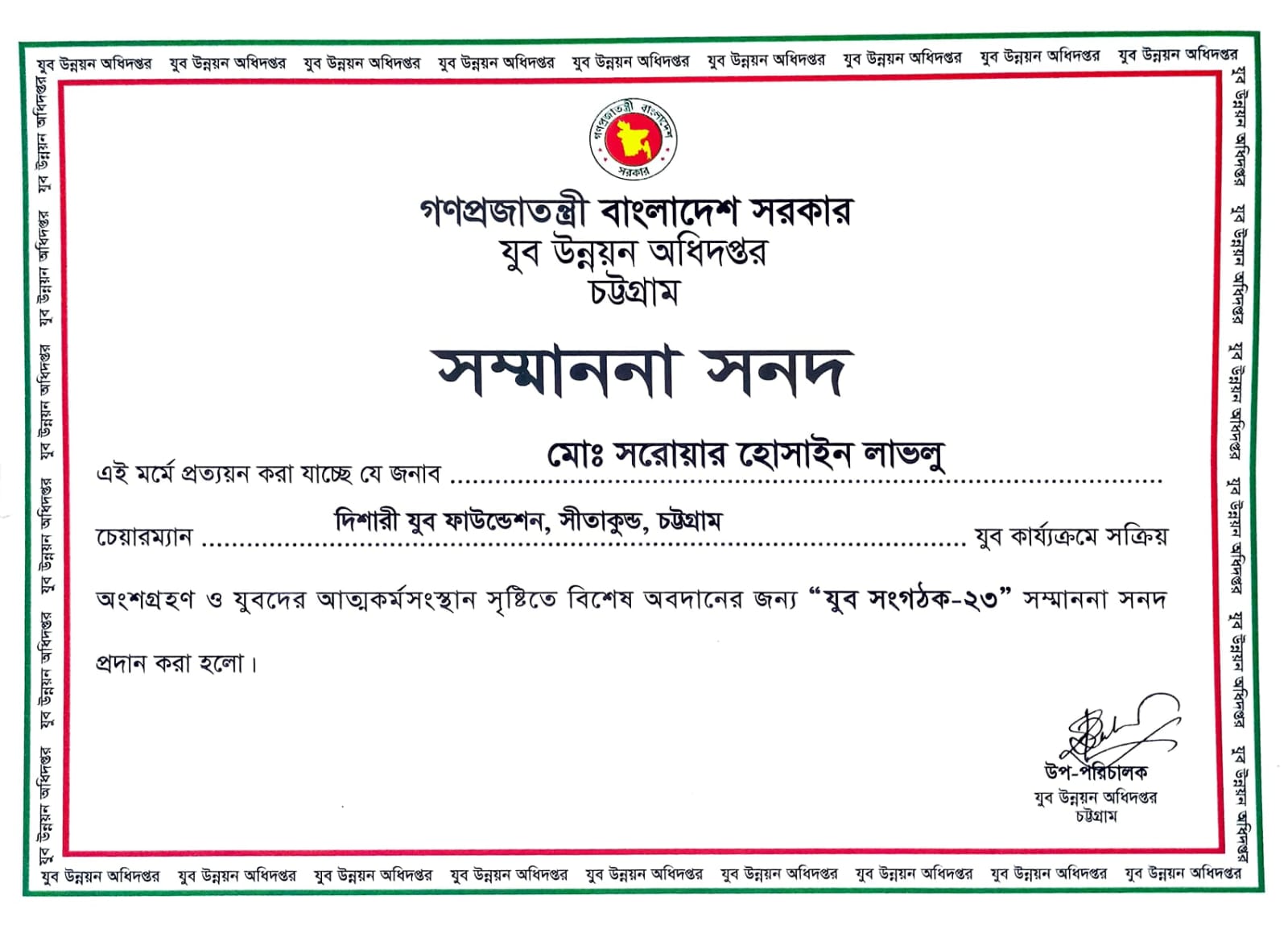 Chairman, Disari Youth Foundation Bangladesh